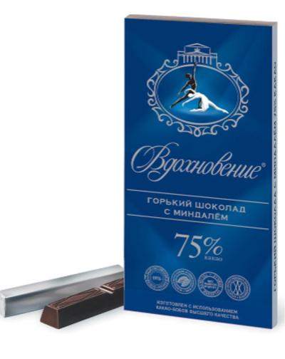 "VDOHNOVENIE" 75% COCOA CHOCOLATE w/ ALMOND 17*90g