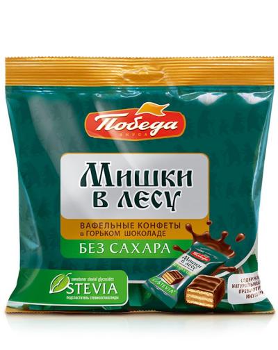 80133= "POBEDA" WAFERS IN CHOCOLATE "MISHKI V LESU" w/ STEVEA 12*150gr